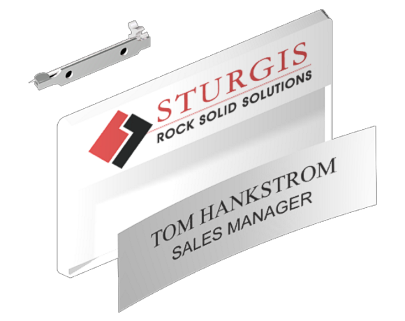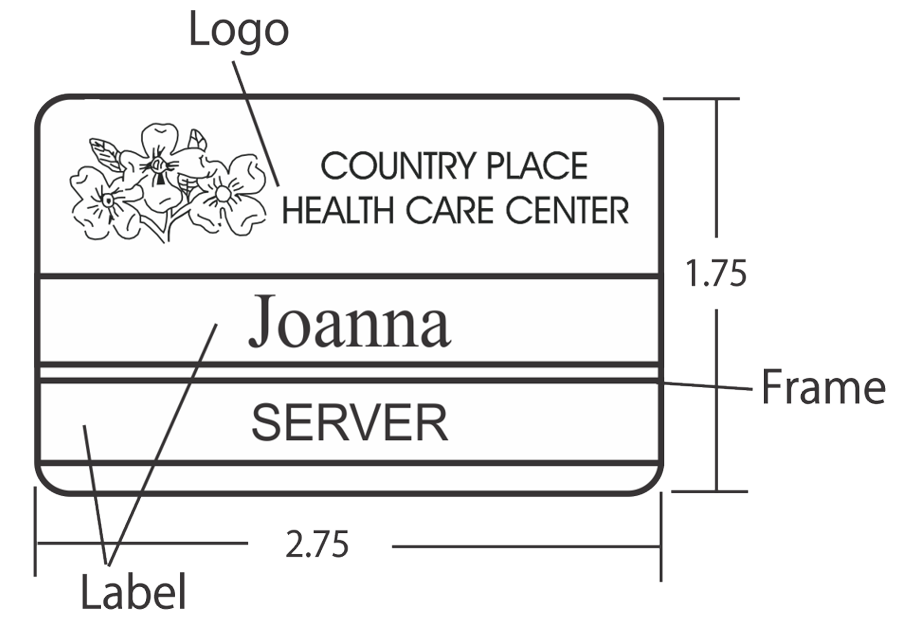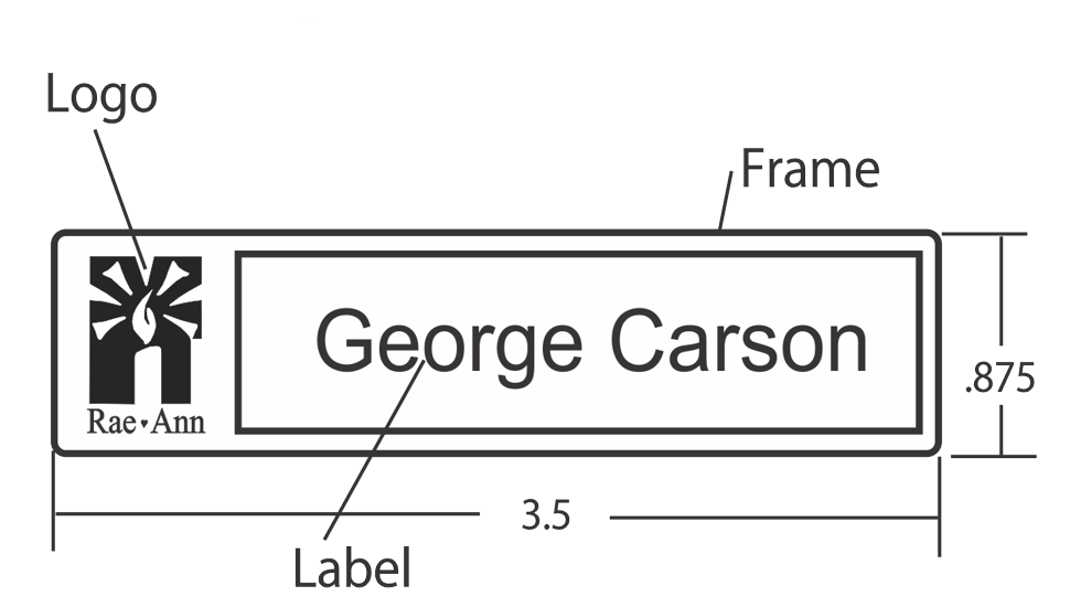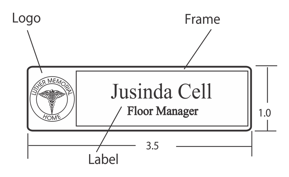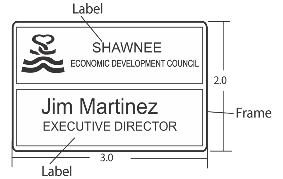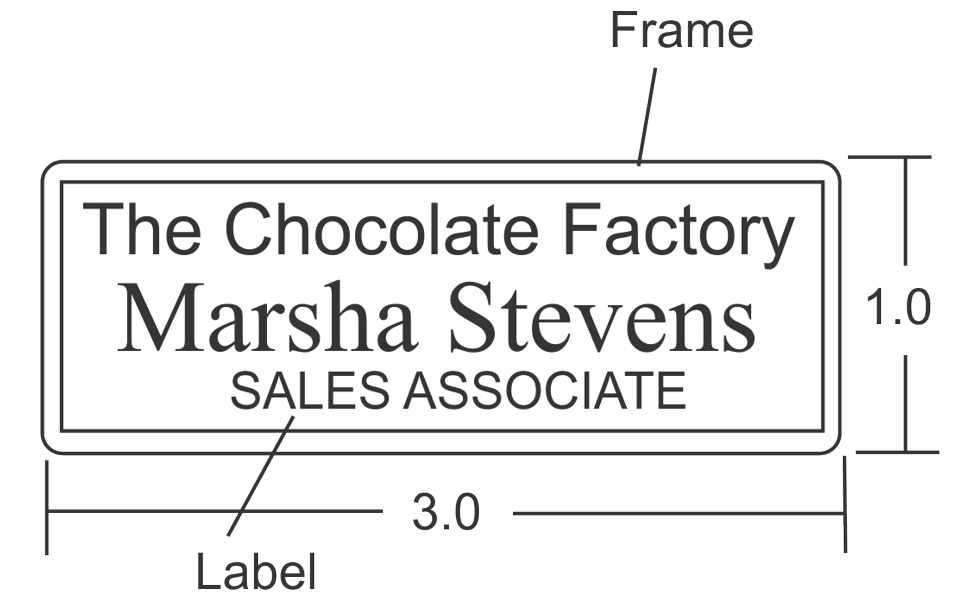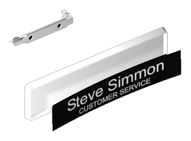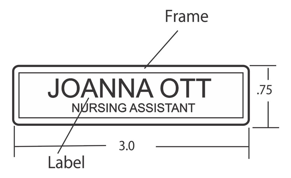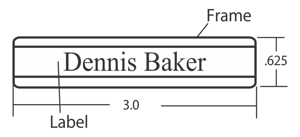 By simply typing names and titles into a number of labeling systems, you can create a laminated, self-adhesive label and then apply the label to one of our frame styles and you will have an inexpensive, attractive, long lasting name tag. See some of the label type name tags hereunder.