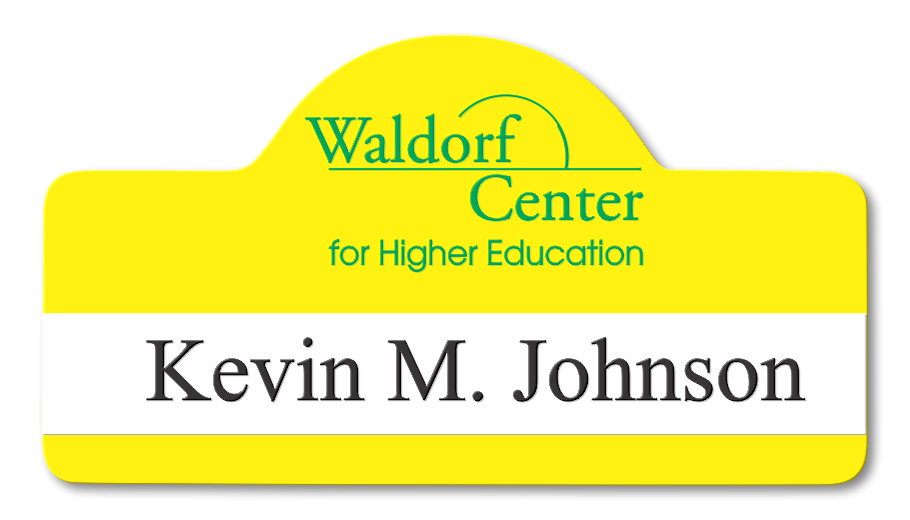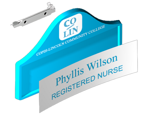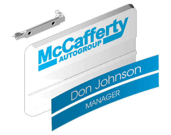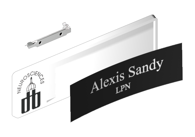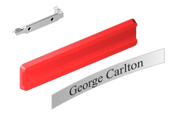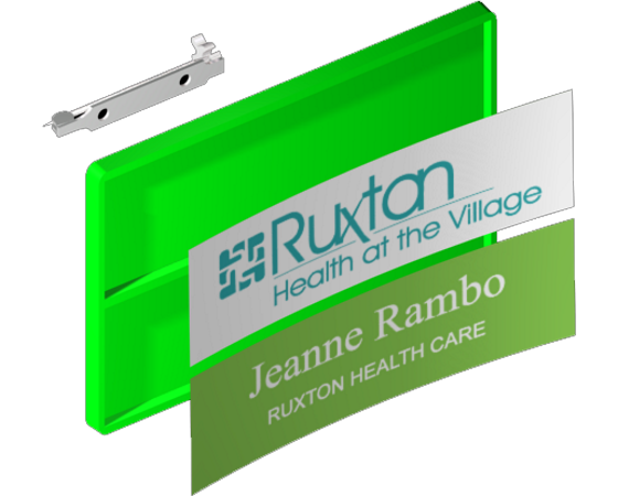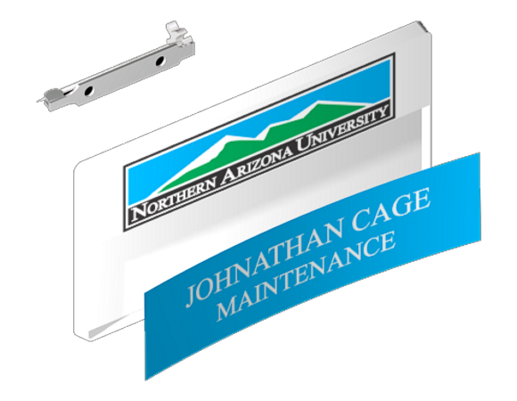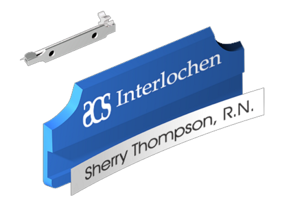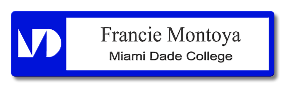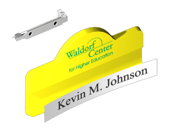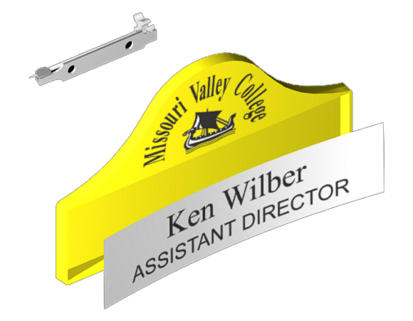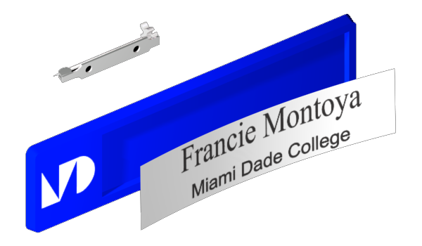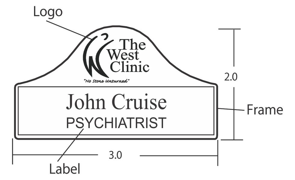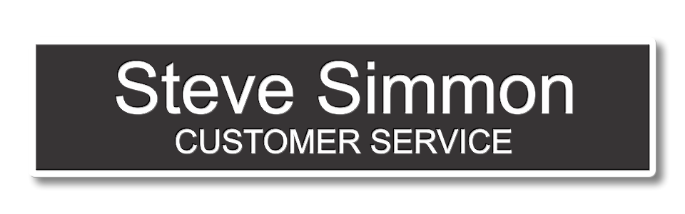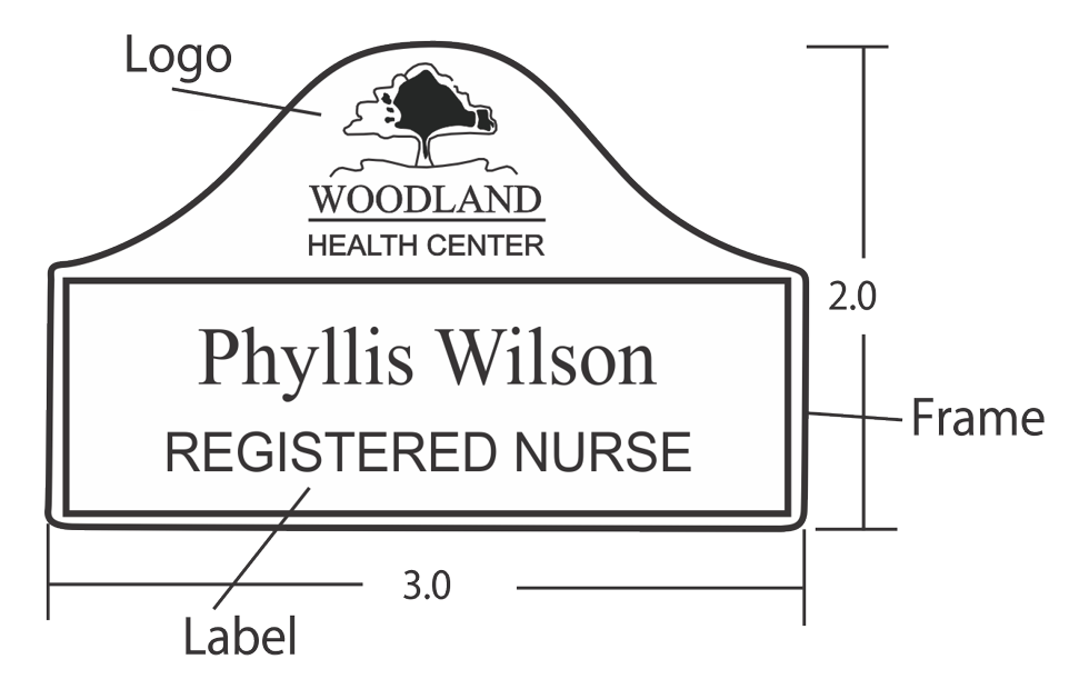 By simply typing names and titles into a number of labeling systems, you can create a laminated, self-adhesive label and then apply the label to one of our frame styles and you will have an inexpensive, attractive, long lasting name tag. See some of the label type name tags hereunder.