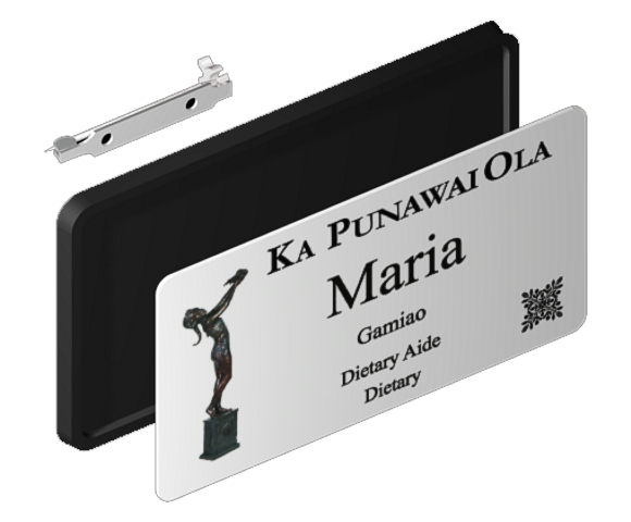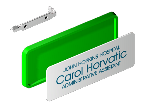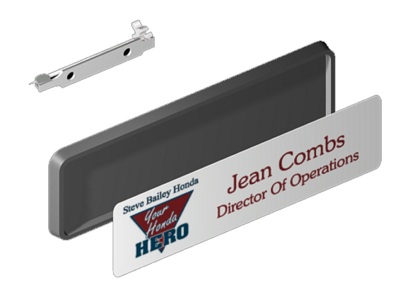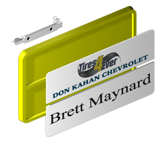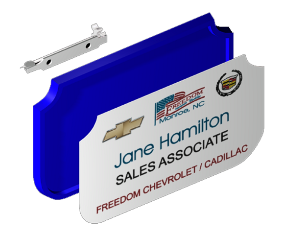 Namark Signature series name are manufactured from a 1/32" thick imprinted plate adhered to a rigid polystyrene frame to produce a durable, long lasting, attractive name tag in an endless array of color combinations. Your badges can be hot printed, sublimated or a combination of engraving and printing.